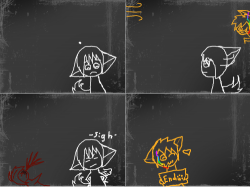 Nom is messing with his friends! Ren is the white one, Vile is the red and nom is the orange. (all are my ocs, you can know more about them after I have draw more, pretty soon i'll do a few drawings with info on them if you care to know about them! x3)