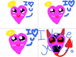 love,hate : a hart that tells a deval hart she loves him, he seas he hates her..she dosent give up, finaly he gets realy mad 스케치판 ,sketchpan,sketchpan.com