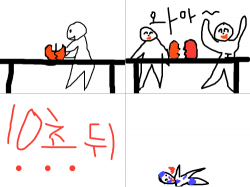 사과 : 사과를 남자가 맨손으로 갈랐는데 그건이미 짤려 있었다.그걸본 여친이 내가 몰를것같았냐 그러고는 남친을 때렸다. 스케치판 ,sketchpan,sketchpan.com