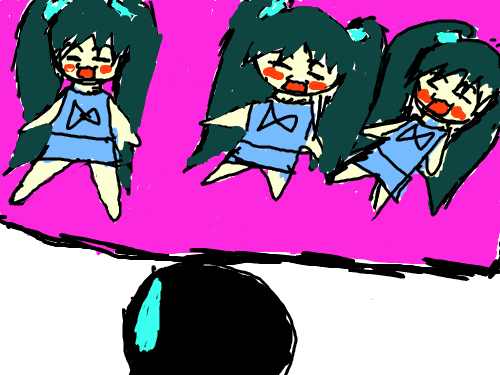 3명의 미쿠. : 심심해서 그냥 그려봤음. 스케치판 ,sketchpan,sketchpan.com