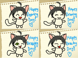 Its a cute kitty telling everyone to have a wonder Drawing Day and to get out there and DRAW! =9
